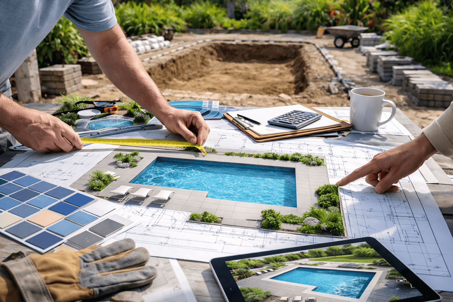 Zu Beginn der Planung skizzieren wir gemeinsam Ihre Poolanlage. Anschließend erstellen wir einen maßstabsgetreuen Poolplan, den wir gemeinsam Schritt für Schritt anpassen, bis Form, Größe und Gestaltung perfekt zu Ihrem Garten passen.
