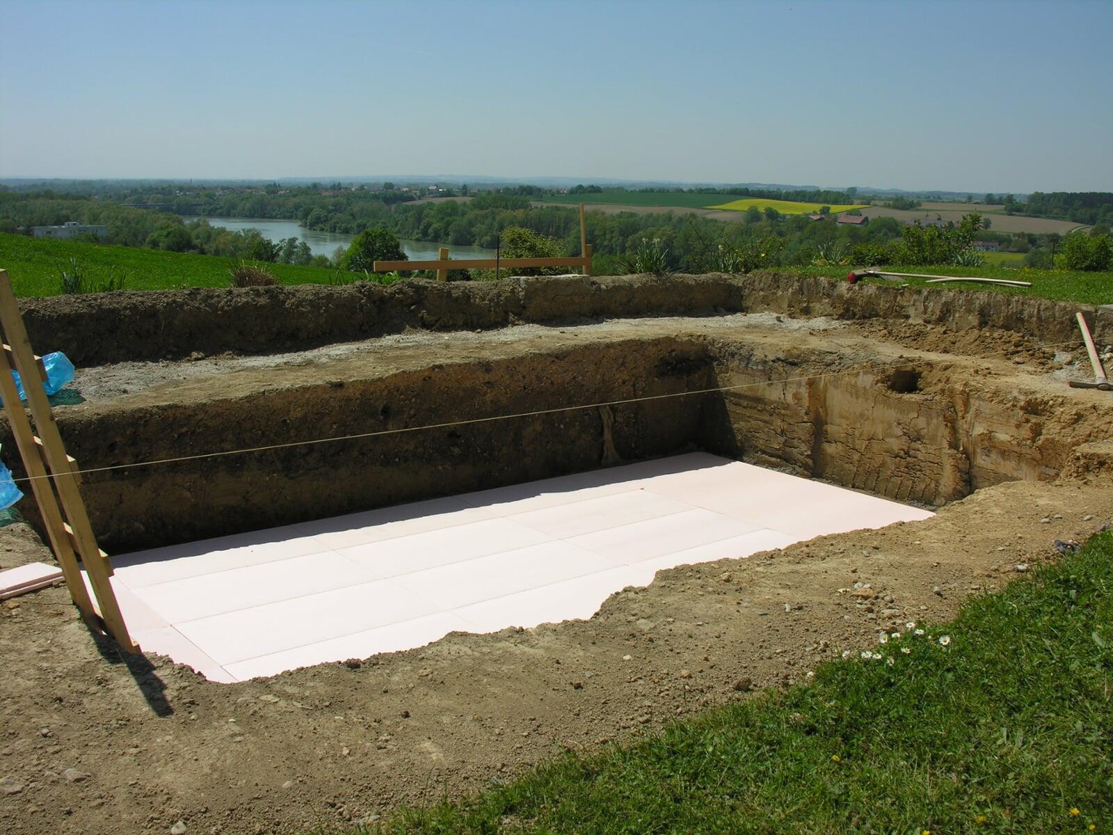 Als erster Schritt erfolgt der Aushub der Baugrube, die rundum etwa 30 cm größer als das Poolbecken ausgeführt wird. Am Boden wird anschließend eine Rollierung inklusive Drainage eingebracht. Bitte orientieren Sie sich dabei an unseren Plänen.