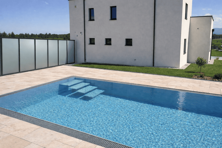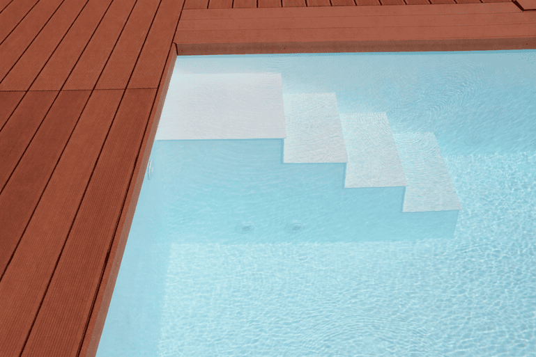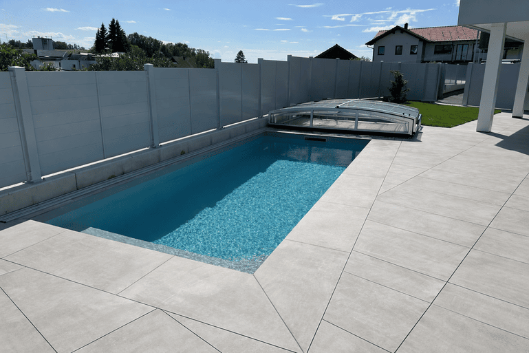 Standardmäßig verwenden wir PPC-UV, wodurch unsere Pools bestens für den Außenbereich geeignet sind. Die Platten beziehen wir ausschließlich von der Firma Röchling, die für höchste Qualitätsstandards steht – bei Qualität machen wir keine Kompromisse. Auf Wunsch bieten wir auch PG- oder PGX-Platten mit noch höherer Chlor- und Oxidationsstabilität an.