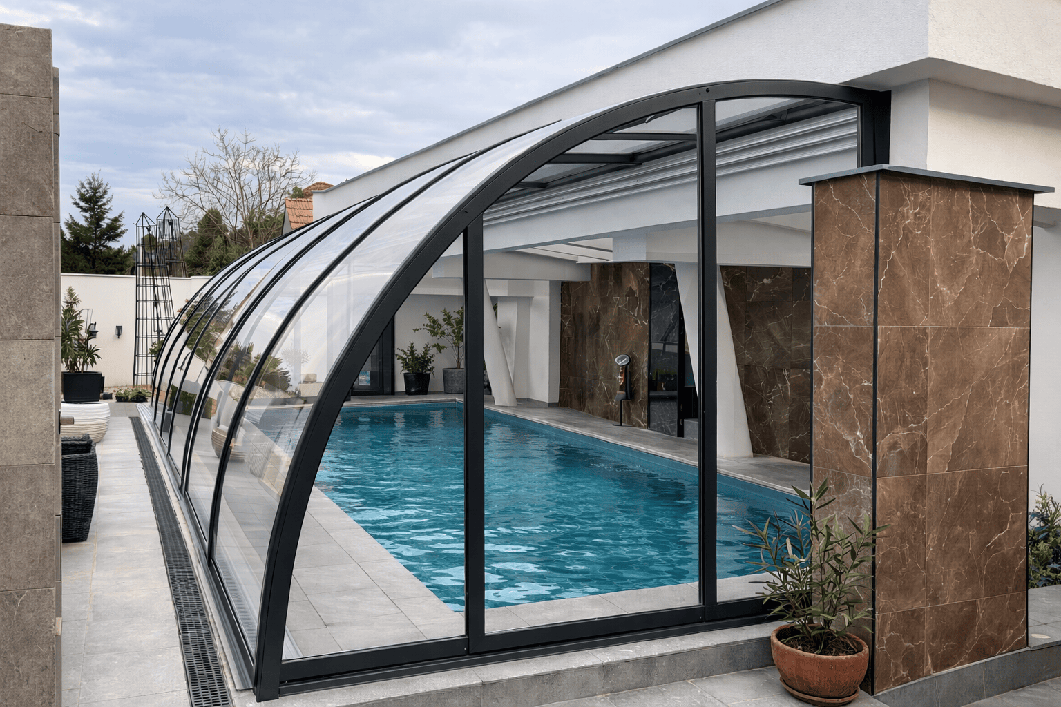 Schiebehallen bzw. Poolüberdachungen sind eine sehr robuste und bewährte Lösung und überzeugen durch ein hervorragendes Preis-Leistungs-Verhältnis. Wir sind sehr stolz auf diese Systeme, die auch am Markt sehr gut angenommen werden. Unsere Abdeckungen sind sehr erfolgreich und wir montieren sie in ganz Österreich und Deutschland.
